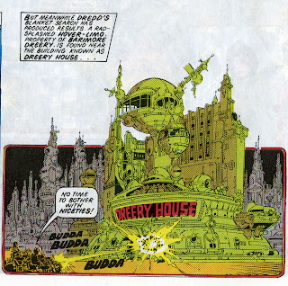 Unlike Batman, Daredevil, and Superman, Judge Dredd's personality does not match his environment. Mega City One is exhuberant, unrestrained, and slightly absurd, while Judge Dredd is rigid and has somewhat of a monotonous outlook, but notice how different each Block is represented, how each block has developed it's own personality for the residents that live there.